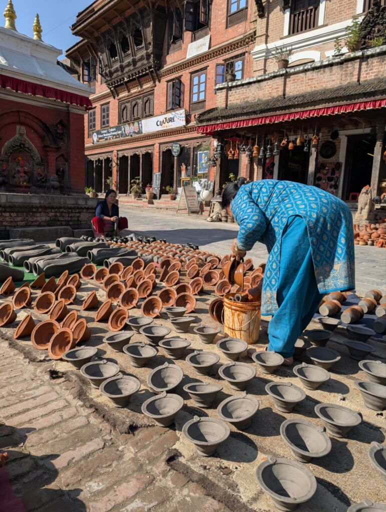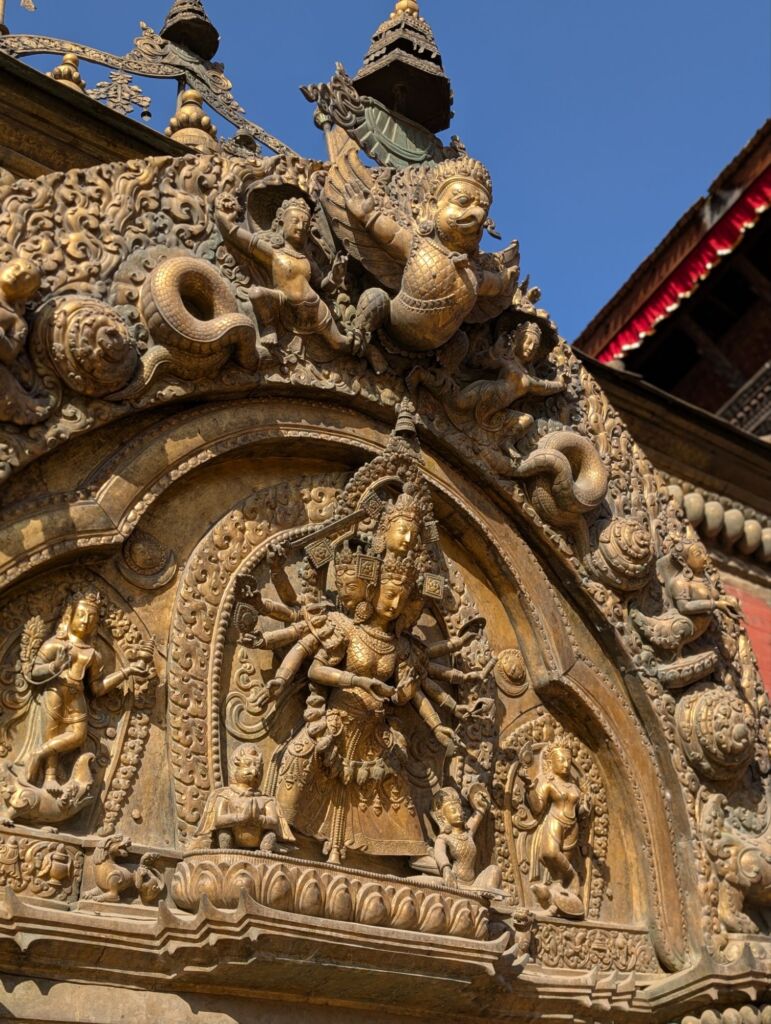 Und wenn in Bandipur die Zeit stehen geblieben war, dann wurde sie in Bhaktapur zurück gedreht. Die alte Königsstadt war eine Hochburg des Handwerks für Holzschnitzerei und Metallkunstwerk. Kaum angekommen wird man förmlich in die alten Gassen hineingezogen und an jeder Fassade und jeder Haustür sieht man diese Ursprünge der Stadt.
