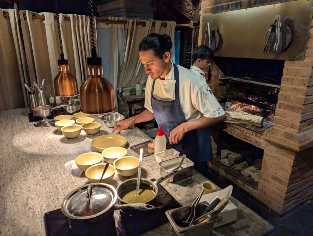 4 Monate haben sie offen, dann reisen sie 2 Wochen durchs Land, um aus jeder Region spezielle Zutaten und Zubereitungen zu sammeln. Dann wiederholt sich das Spiel. Der Koch hat sein Handwerk in Dubai und Australien und Kopenhagen beim Noma gelernt. Hier ein kleiner Auszug. Yak Fleisch gibt es übrigens nicht. Wie ich lerne, darf Yak auch nicht innerhalb des Landes aus der oberen Gegend exportiert werden, um diese dort rare Proteinquelle dort zu belassen.
