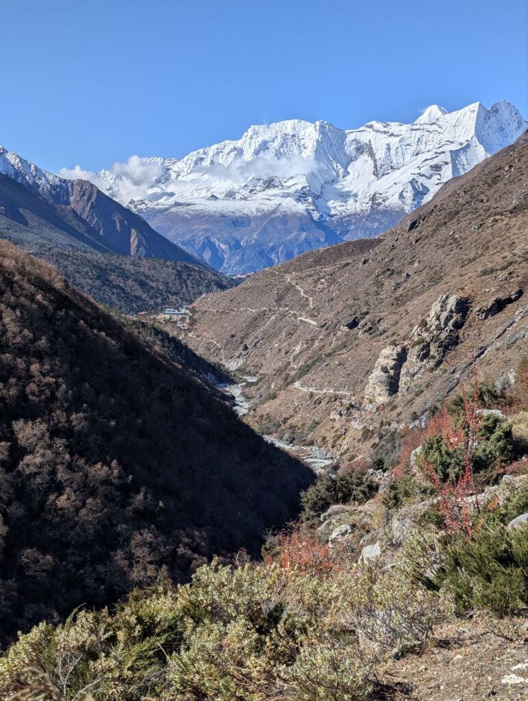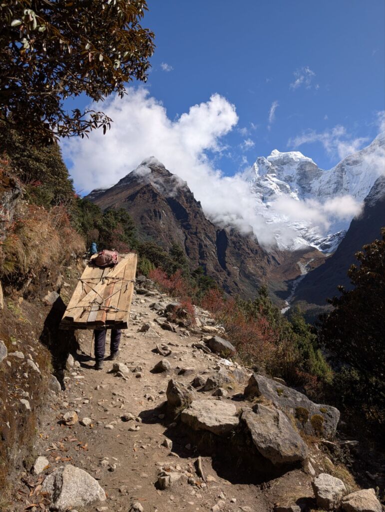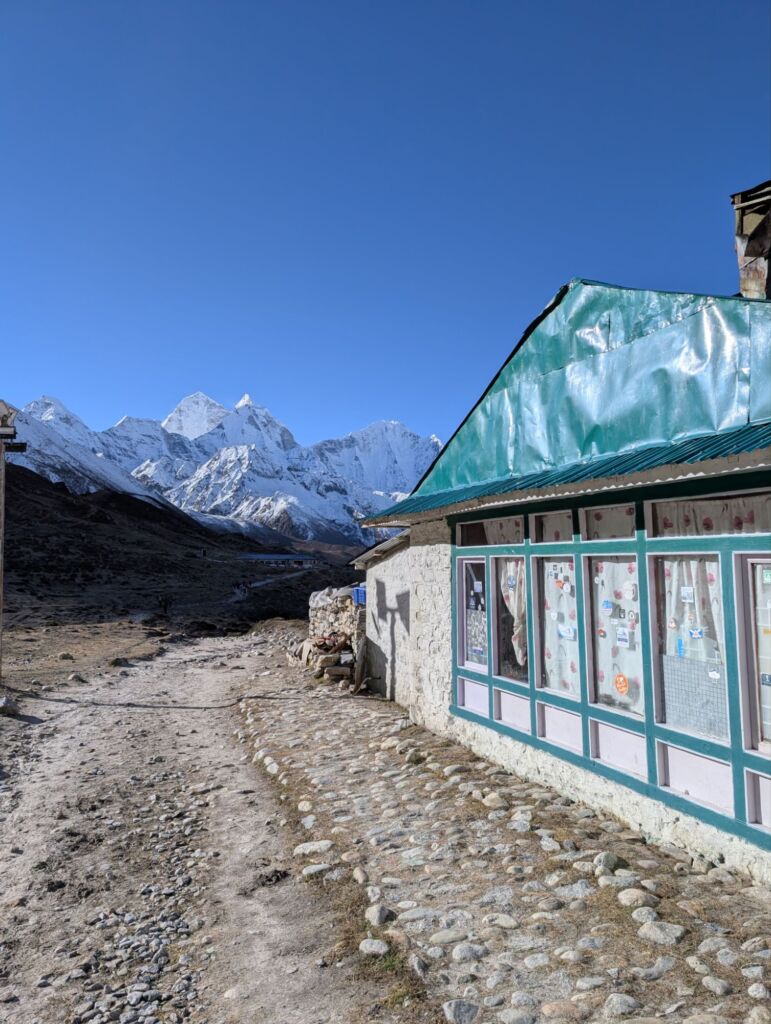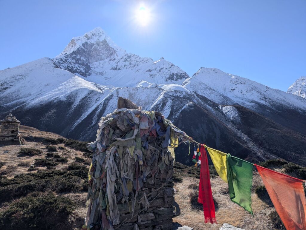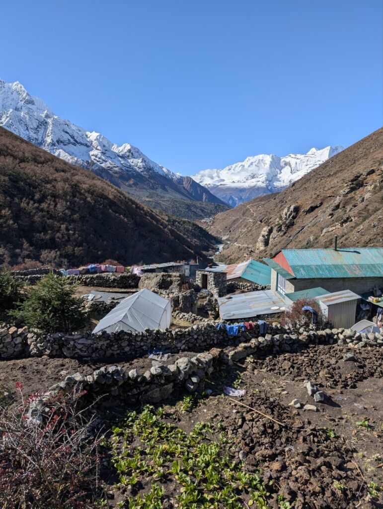 Wer hätte es gedacht…wenn man den Berg raufklettert muss man ihn auch wieder runtergehen 🙂 warum wir das aber so schnell machen müssen?? Naja es stand heute 8 Stunden Gewaltmarsch für 20 km auf dem Programm. Also wurde der Ofen nochmal mit Yak Dung angefeuert um im Warmen zu frühstücken und dann gestärkt los zu ziehen. Interessant ist, dass die Haustür bis auf die Nacht immer offen steht und die Kälte reinzieht. Nur die Tür zur Stube ist zu. Aber das soll die Offenheit und Gastfreundlichkeit zeigen.
