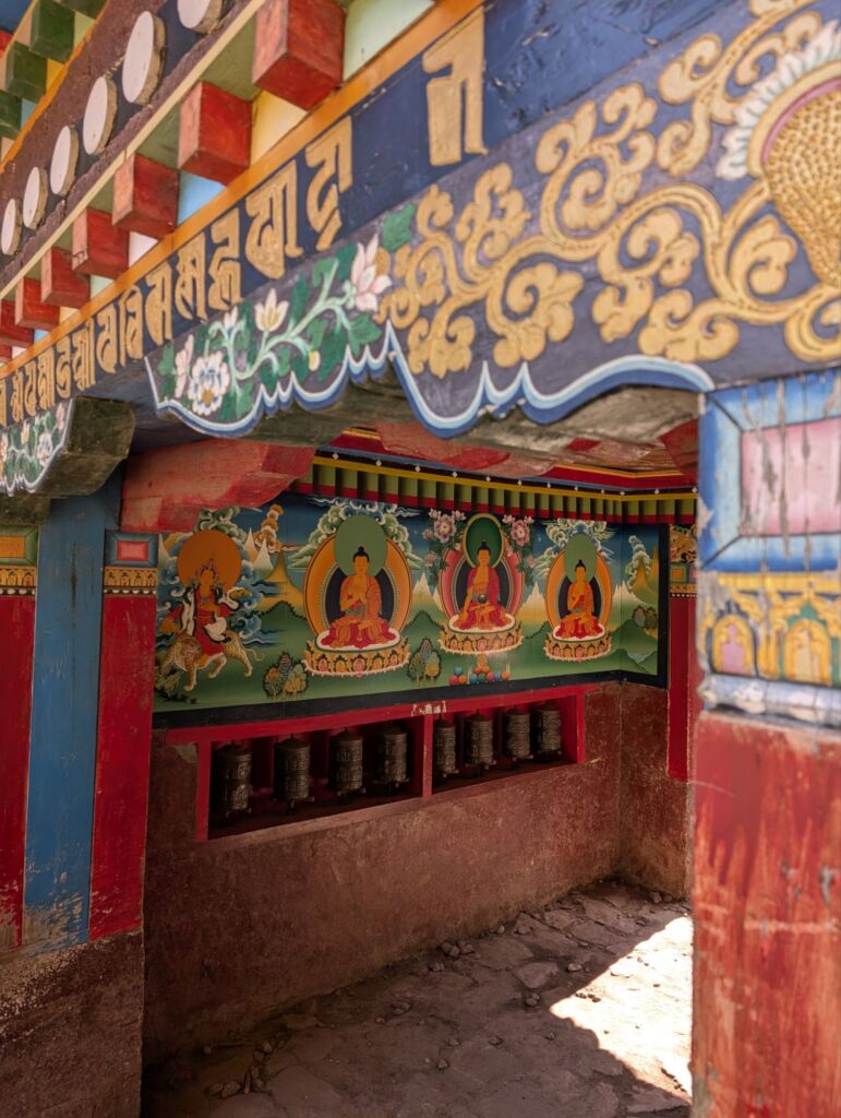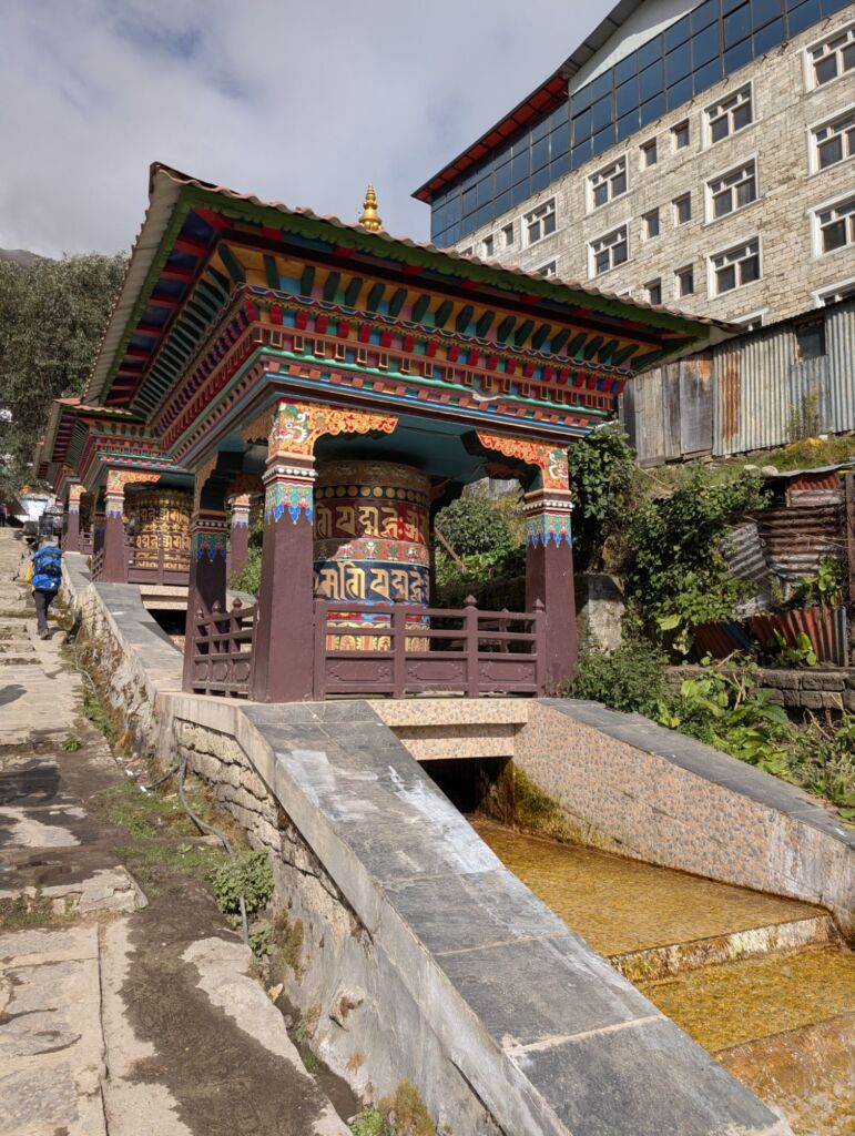 Hier werden sogar die Gebetsmühlen mit Wasserkraft angetrieben. Sie müssen übrigens immer im Uhrzeigersinn gedreht werden.