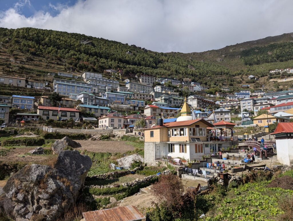 Nach 7 Stunden sind wir an unserem Tagesziel angekommen Namche auf 3.440 m (+830 Hm).