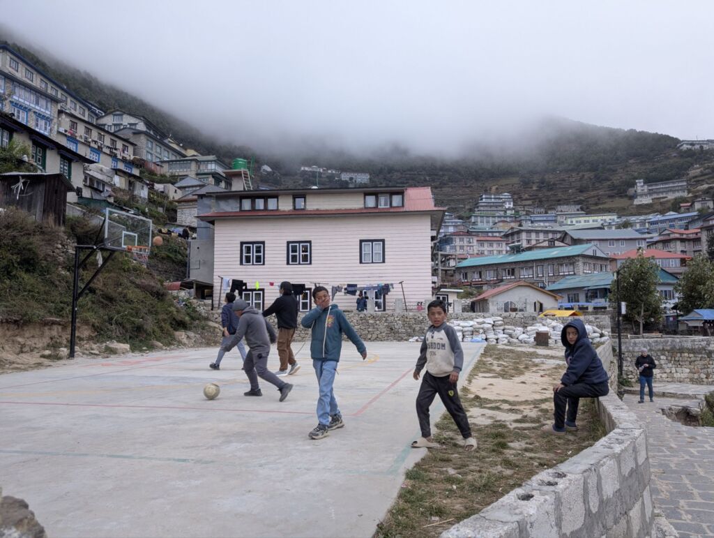 Den höchsten Basketball Platz der Welt haben sie hier offenbar auch. Natürlich spiele ich eine Runde mit.