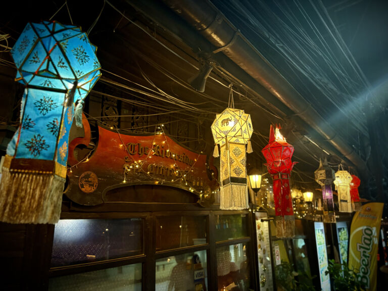 Neben den Krathongs werden auch einfach Bambus und Bananenblätter mit einer Kerze in den Fluss gesetzt. Die werden von den Mönchen am Tempel verkauft körbeweise verkauft. Und wirklich jeder macht mit. Familien, Mönche ganze Freundeskreise und auch pubertierende Jugendliche setzen ihre Schiffe in den Fluss. Dadurch entsteht ein konstanter Strom an leuchtenden Punkten im Fluss und es gibt eine wunderschöne Atmosphäre.